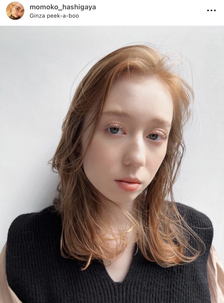 🔴暖色系ヘア(オレンジ・ピンク・レッド) → ブラウン系の眉で血色感をプラス