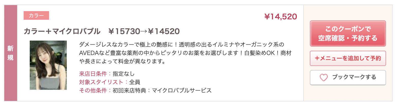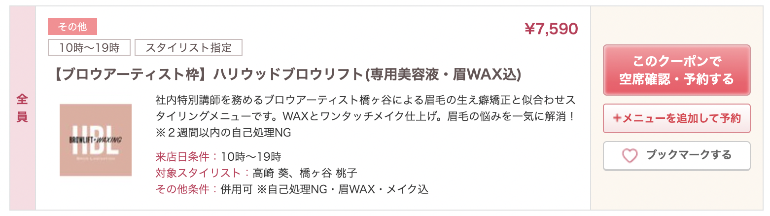 同時にヘアカラーと眉毛メニューをされたい場合は以下のクーポンをお使いください^