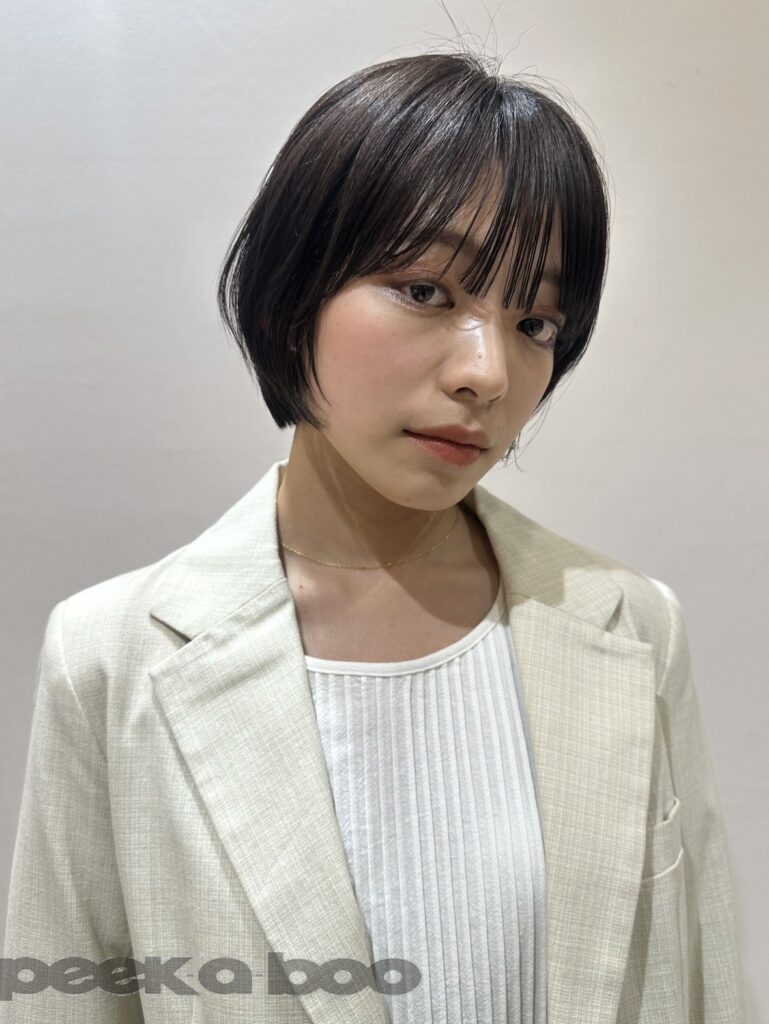 オフィスにもお出かけにも色んなシーンにマッチするショートボブです。