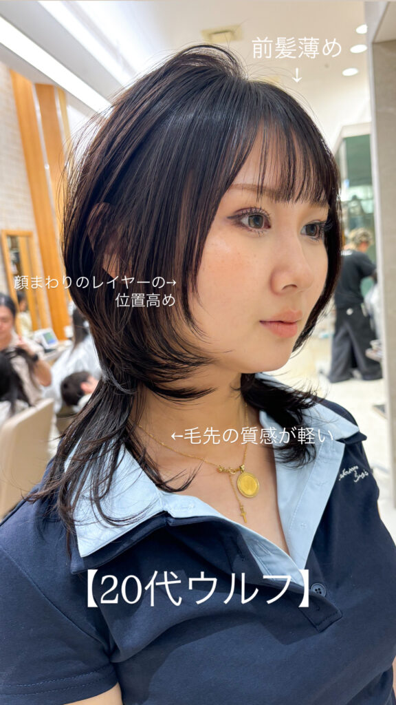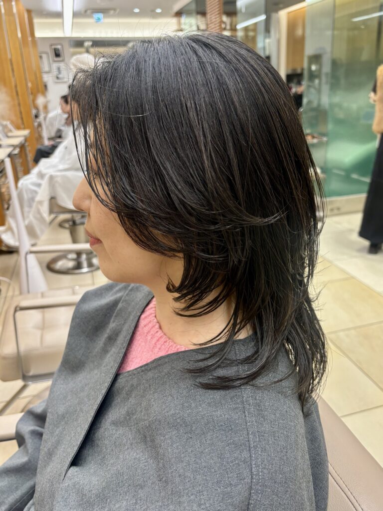 ガッツリウルフに比べると、顔まわり以外は少し重めのスタイルになっているので、いきなりウルフにするのは心配・・・という方におすすめ!