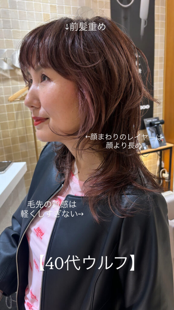 40代のウルフカットは、”トレンドを追う”よりも”今の自分に似合わせる”ことが大切です。