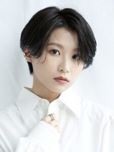 前髪パッツンとインナーカラーでモードスタイルに! モードな前髪とインナーカラーの相性が◎ 前髪は1人1人に合わせソフトからクールまでに合わせ、骨格と毛量を見極めインナーカラーの量もソフトからエッジーなものもに。 25ミリのコテでゆるーく外ハネにスルーすると柔らかく仕上がります。