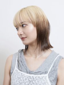 毛量が多かったり、クセ毛などで髪が広がりやすい方にオススメの長め外ハネボブです。 さらにイノアカラーなら指通り良く、毛量もスッキリに感じます!