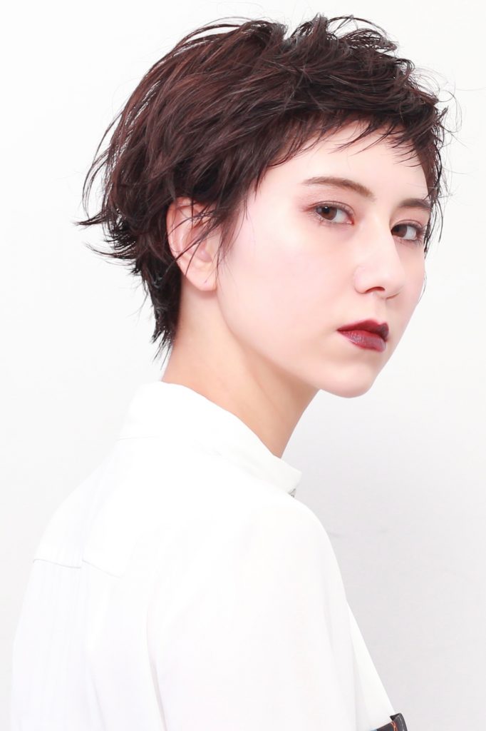 クセ毛の方にオススメしたいショートスタイルです。 トップに、レイヤーで高さを出すことで、横に広がりやすい方でもショートスタイルにすることができます。 ハンドブローで乾かし、ウェットなスタイリング剤を使うだけで、クセ毛を活かしたスタイルに。ぜひご相談下さい。